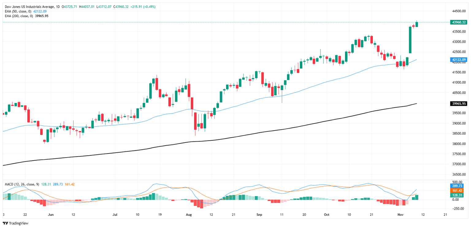 The Dow Jones Industrial Average (DJIA) rose into fresh all-time highs on Friday, clipping into 44,000 as stocks lean firmly bullish to close out a record week. The Dow had its best week since October of 2023, rising nearly 5% and piercing record bids three days in a row.
