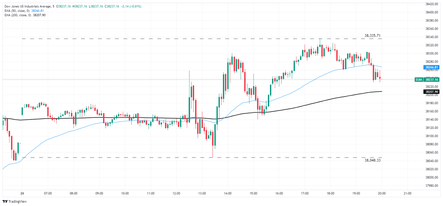 The Dow Jones is trading well within the week’s price range, setting Friday’s low bids at 38,048.33 before recovering into an intraday high of 38,335.71. The major equity index is still down slightly from the week’s peak prices at 38,556.80, but is recovering firmly after setting the week’s lows at 37,745.54 on Thursday’s pullback.