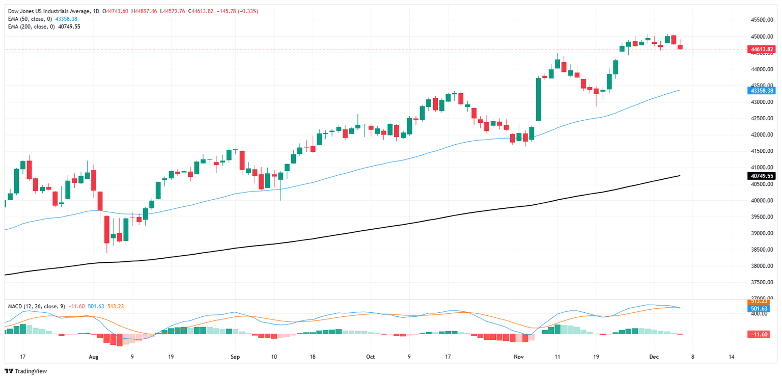 Despite softening further on Friday and dragging the major equity index into a down week, the Dow Jones is trading firmly into bull country and still holding north of 44,500. The DJIA slipped back below the 45,000 major handle this week, but bearish pressure remains tepid at best.
