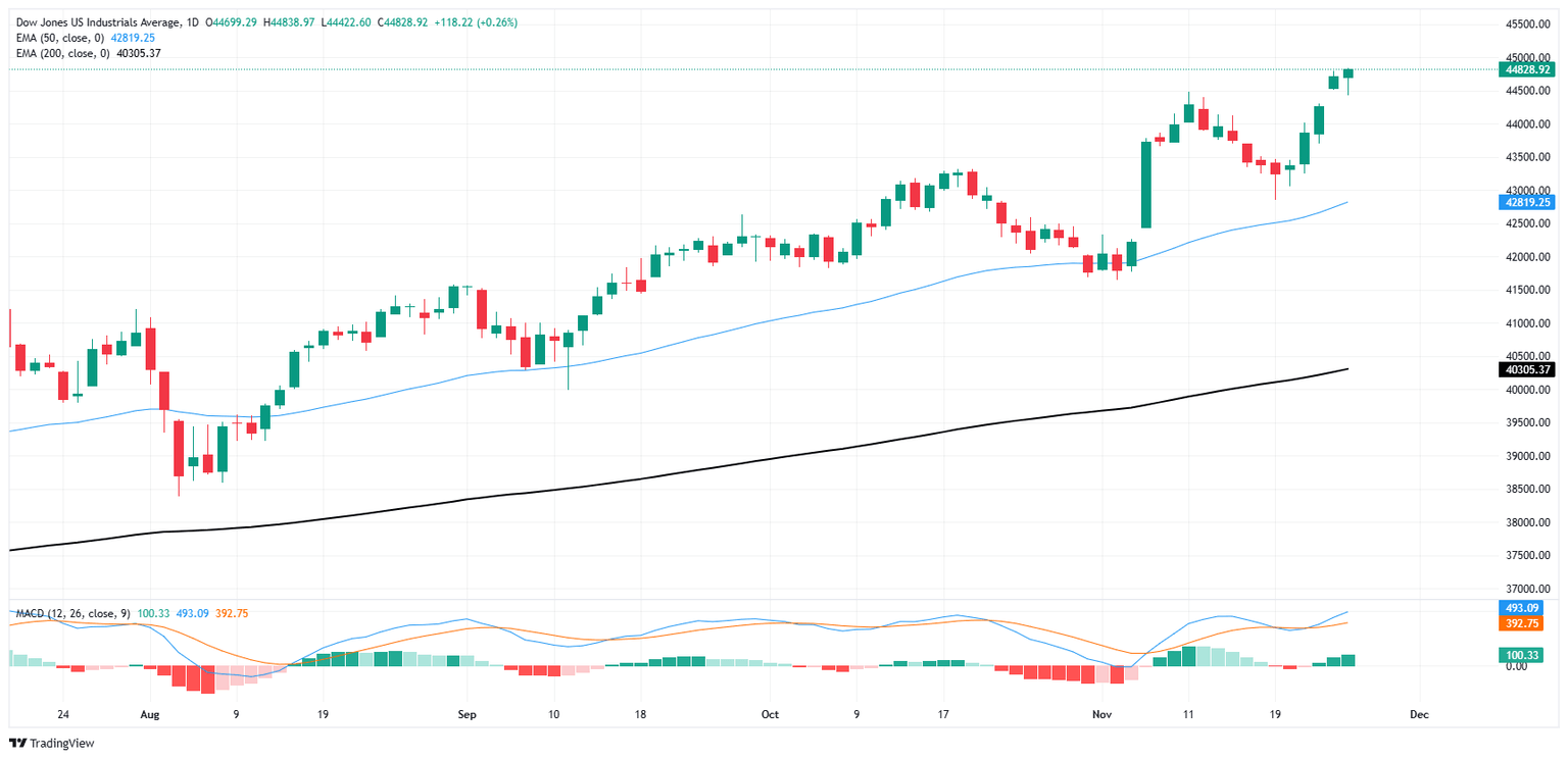 The Dow Jones Industrial Average (DJIA) fell back on Tuesday, shedding over 250 points at its lowest point. Investors shrugged off renewed threats of widespread tariffs on foreign goods from incoming President Donald Trump, but slightly below-expectations results for an experimental diet pill from Amgen (AMGN) dragged the weighted DJIA into the low end for the day. The major equity index recovered its footing heading into the back half of Tuesday's US market session, pushing back into record territory north of 44,800 as investors shrug off headwinds to keep bullish momentum on-balance.