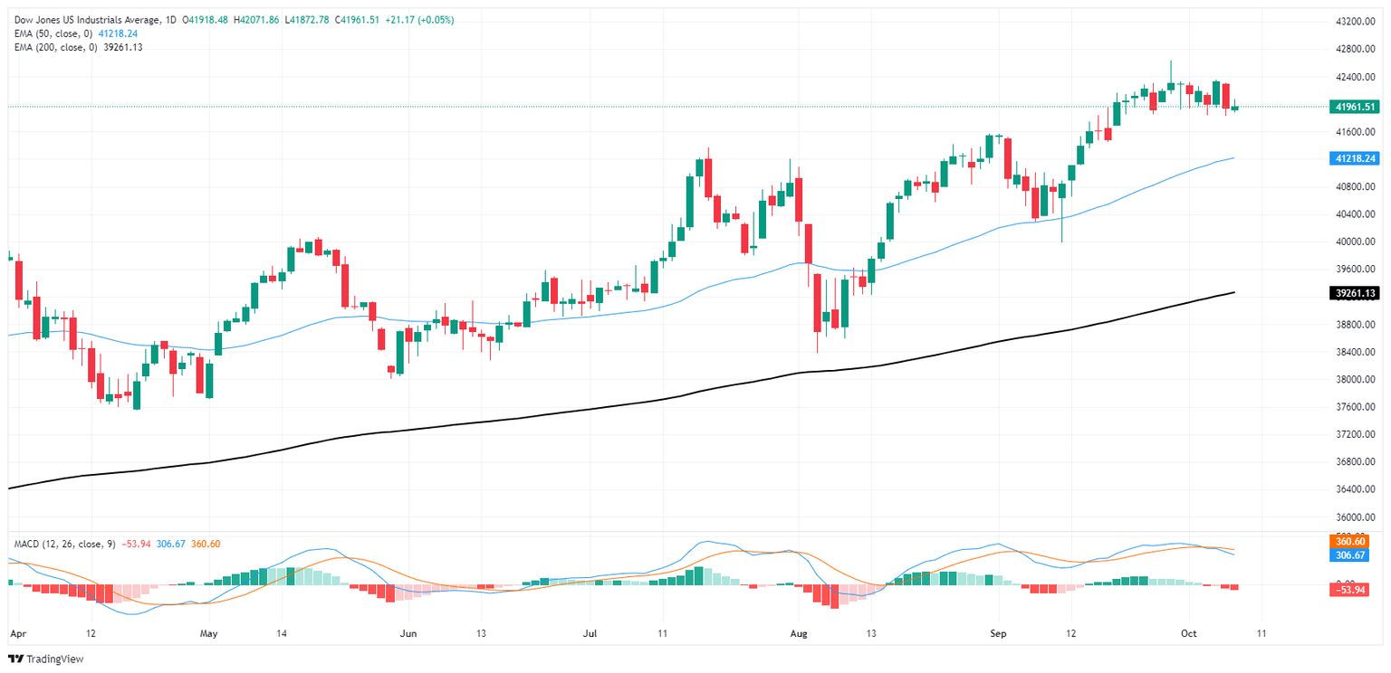 Despite a bearish start to the trading week, the Dow Jones continues to trade north of the 50-day Exponential Moving Average (EMA) near 41,220. The major equity index has bounced off of the 50-day EMA several times in recent months as a bullish uptrend holds steady.