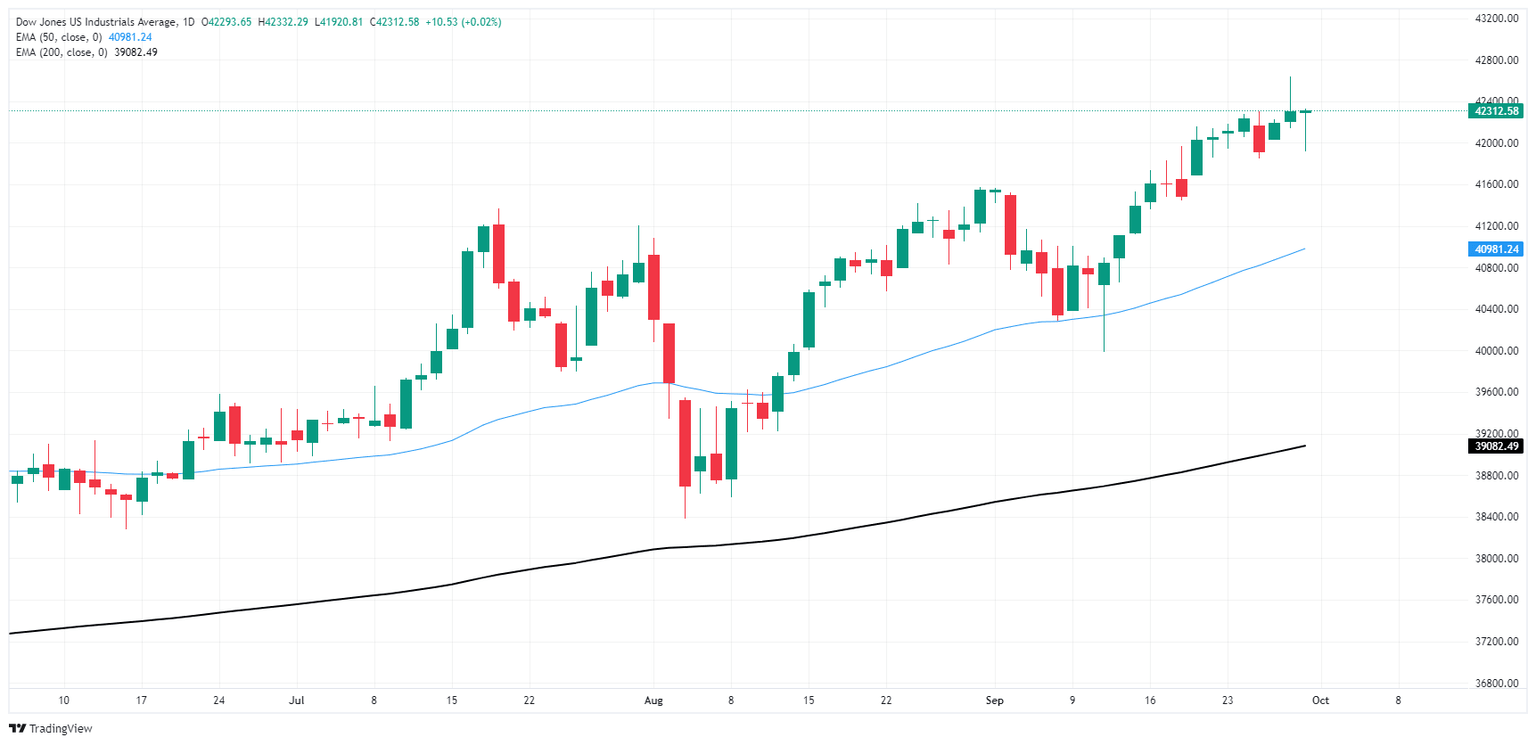 Despite a tepid Monday, the Dow Jones is set to chalk in a stellar September performance. The major equity index hit a record new high last week of 42,636, and added over 1.5% over the month. The Dow Jones is on pace to close for a fifth consecutive month in the green, climbing over 13.5% bottom-to-top from April’s lows near 37,550.