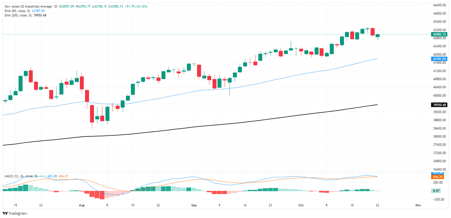 Despite a near-term pullback, the Dow Jones remains in a firmly bullish pattern, with the major equity index trading well above its 50-day and 200-day Exponential Moving Averages (EMA) at 41,788 and 39,453, respectively. DJIA prices have been grinding higher since August’s swing low into 38,400, adding nearly 13% bottom-to-top.