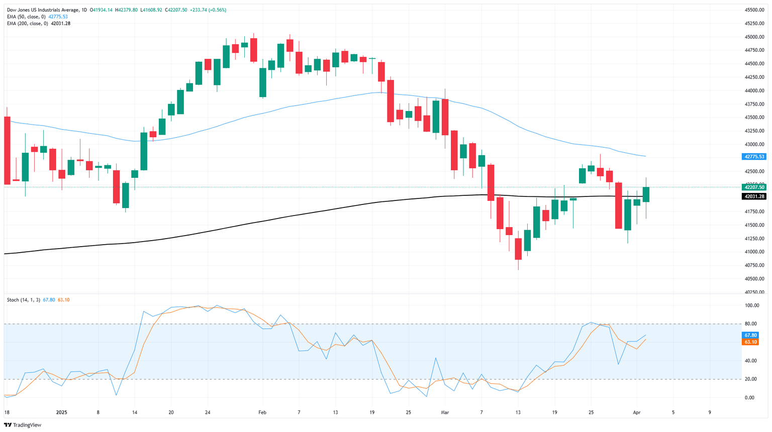 Wednesday saw a bullish spark from the Dow Jones Industrial Average, with bids pushing back above the 200-day Exponential Moving Average (EMA) near the 42,000 handle. Macro flows are dominating the major equity index on Wednesday, crimping technical readings.