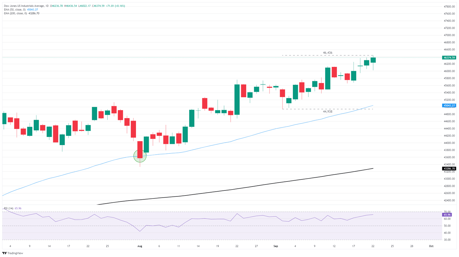 The Dow Jones Industrial Average (DJIA) rose on Monday, testing fresh all-time highs above 46,400. Despite some early session volatility, the Dow is following the rest of the US market higher to kick off the new trading week, with all major indexes showing green across the board.