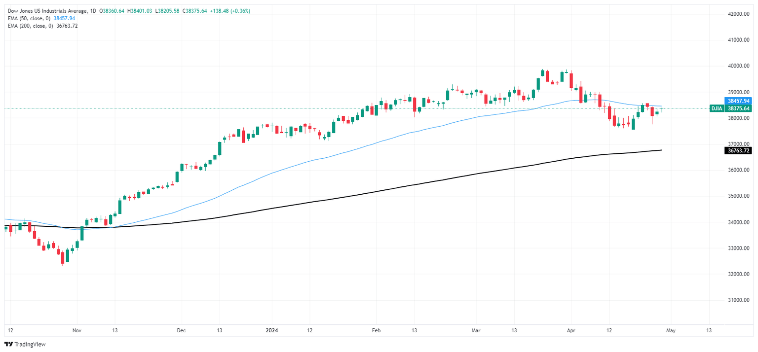 The Dow Jones is down around 4% from the last swing high just shy of the 40,000.00 major handle, bit the index is still trading safely into bull country, bidding north of the 200-day EMA at 36,725.68. The key long-run moving average has been provided a technical price floor for the Dow Jones since the index rose from last November’s bottoms near 32,800.00.
