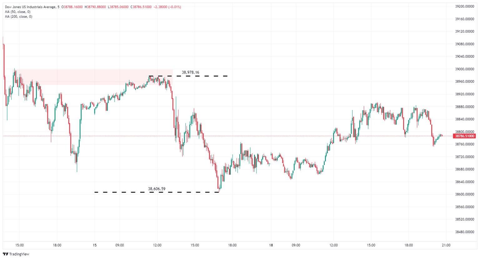 Despite the day’s bullish tilt, the DJIA remains down from recent highs, and the index is still down nearly a full percent from last week’s peak bids near 39,230.00.