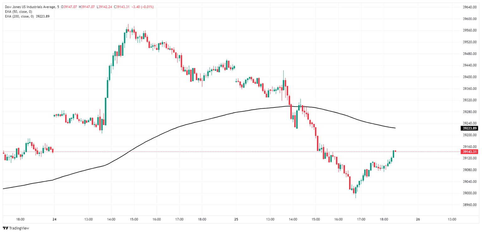 Daily candlesticks continue to grind out chart paper just north of the 50-day Exponential Moving Average (EMA) at 38,864.49, with long-term technical support from the 200-day EMA at 37,455.71. Despite holding in bull country, the Dow Jones has struggled to make firm gains after a -5.15% backslide from all-time highs above 40,000.00 reached in mid-May.