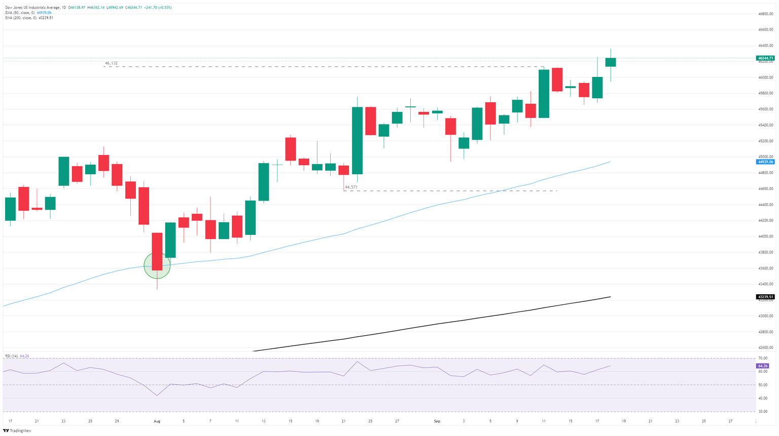 The Dow Jones clipped into the 46,200 level after a volatile start to Thursday’s trading session. The major equity index has climbed into fresh record bids following a near-term spat of congestion, but it is now up nearly eight-tenths of one percent for the week. The Dow Jones is also in the green by one-and-a-half percent for September, and on pace for a fifth straight bullish monthly close.