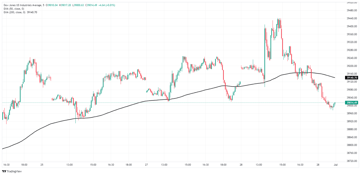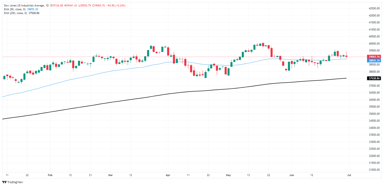 The Dow Jones is still trading above technical support from the 50-day Exponential Moving Average (EMA) at 38,895.76, but price action continues to middle on the low side of recent all-time highs set above the 40,000.00 major price handle.