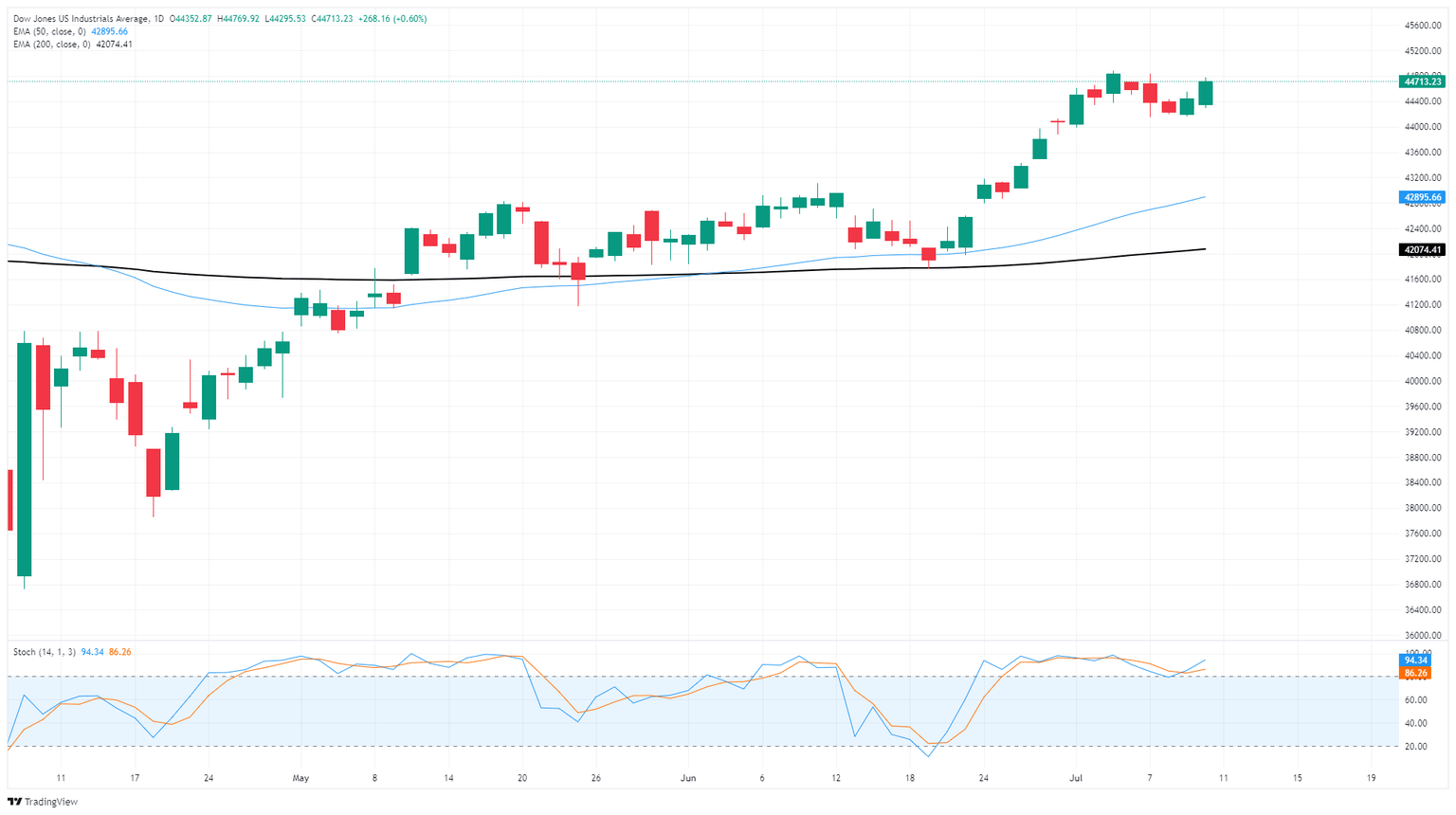 The Dow Jones chalked in a gain on Thursday, clawing back the early week’s losses and putting the major equity index back on the high side heading into the tail end of the trading week. The Dow is still holding steady near the 44,700 level, with bullish momentum poised to take another fresh crack at all-time highs just north of 45,000.