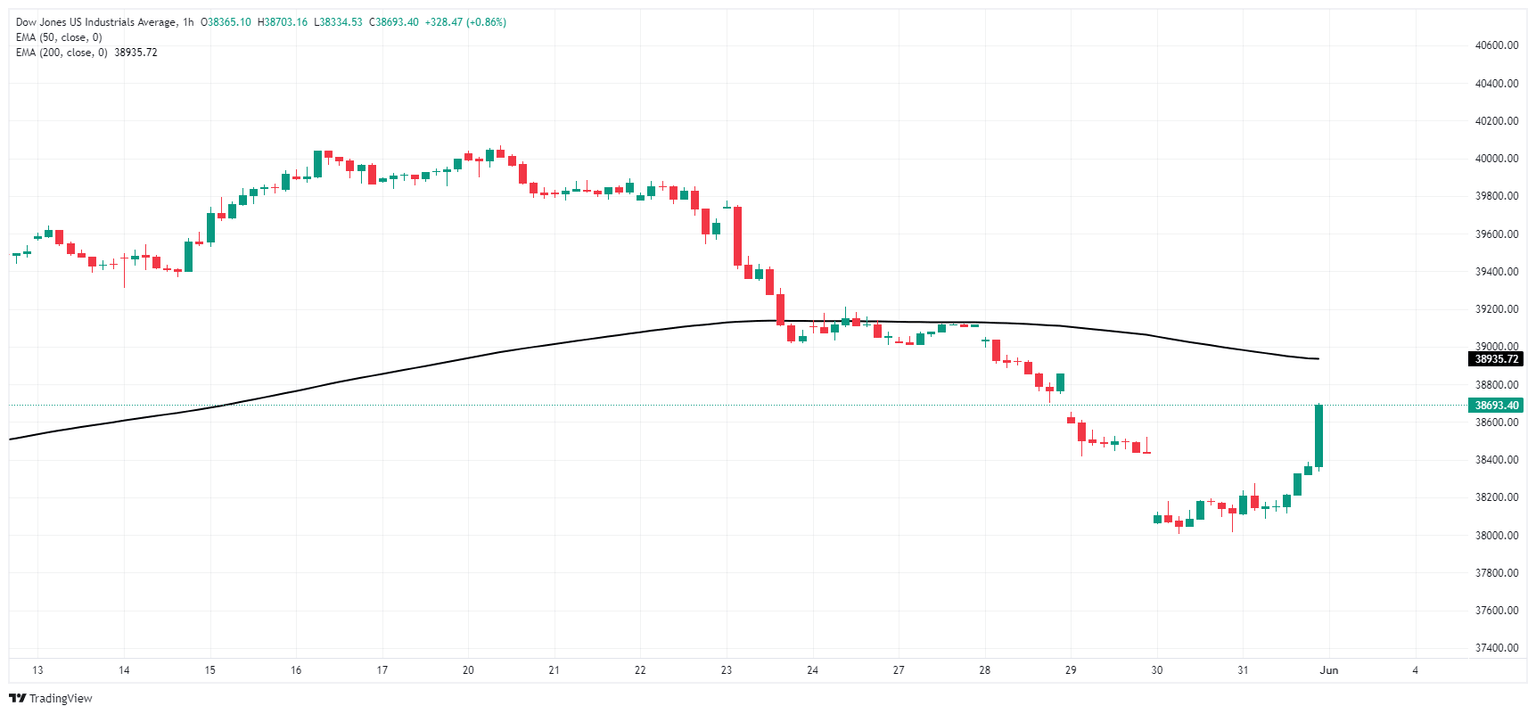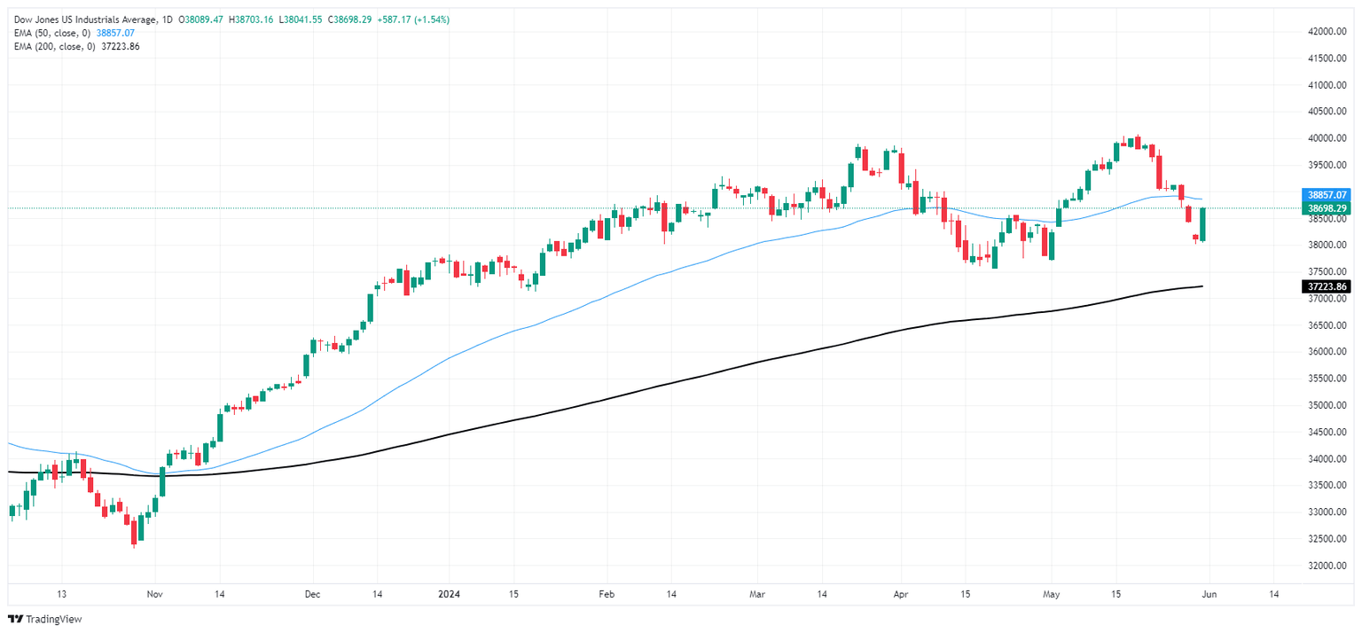 The Dow Jones is rebounding from steep near-term declines, testing into 38,380.00 after hitting a fresh May low near 38,000.00 this week. The major equity index has declined in all but three of the last ten consecutive trading days, and the DJIA is still down -4.2% from record highs set just above 40,000.00 on May 20.