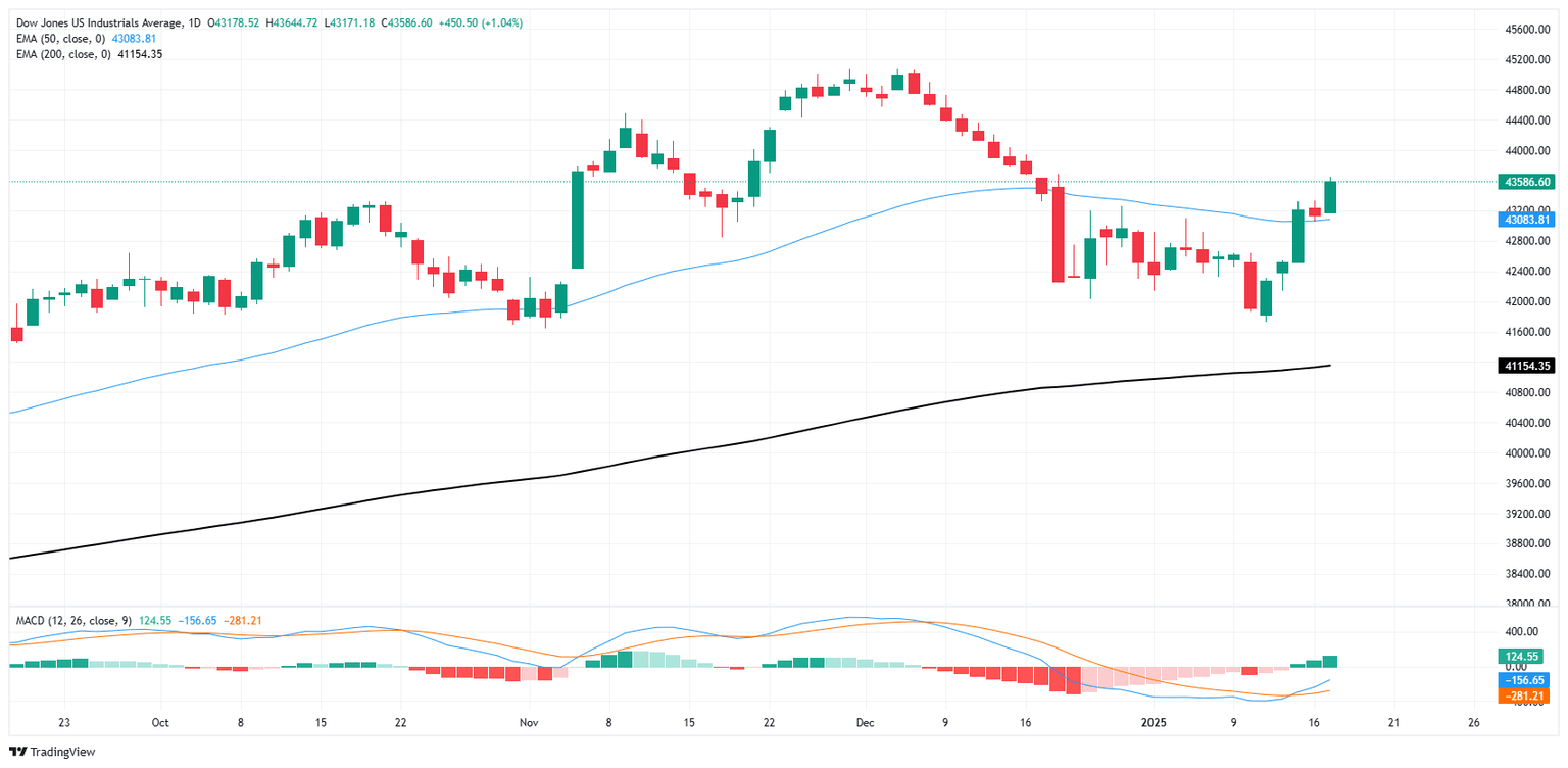 The Dow Jones Industrial Average (DJIA) added over a full percentage point in value on Friday, climbing around 500 points and vaulting back over 43,500 as market expectations for further rate cuts increased. Tech stocks are back on the rise as traders pile back into their risk appetite ways, and the banking sector is broadly climbing after a wide swath of better-than-expected earnings reports from major investment banks this week.