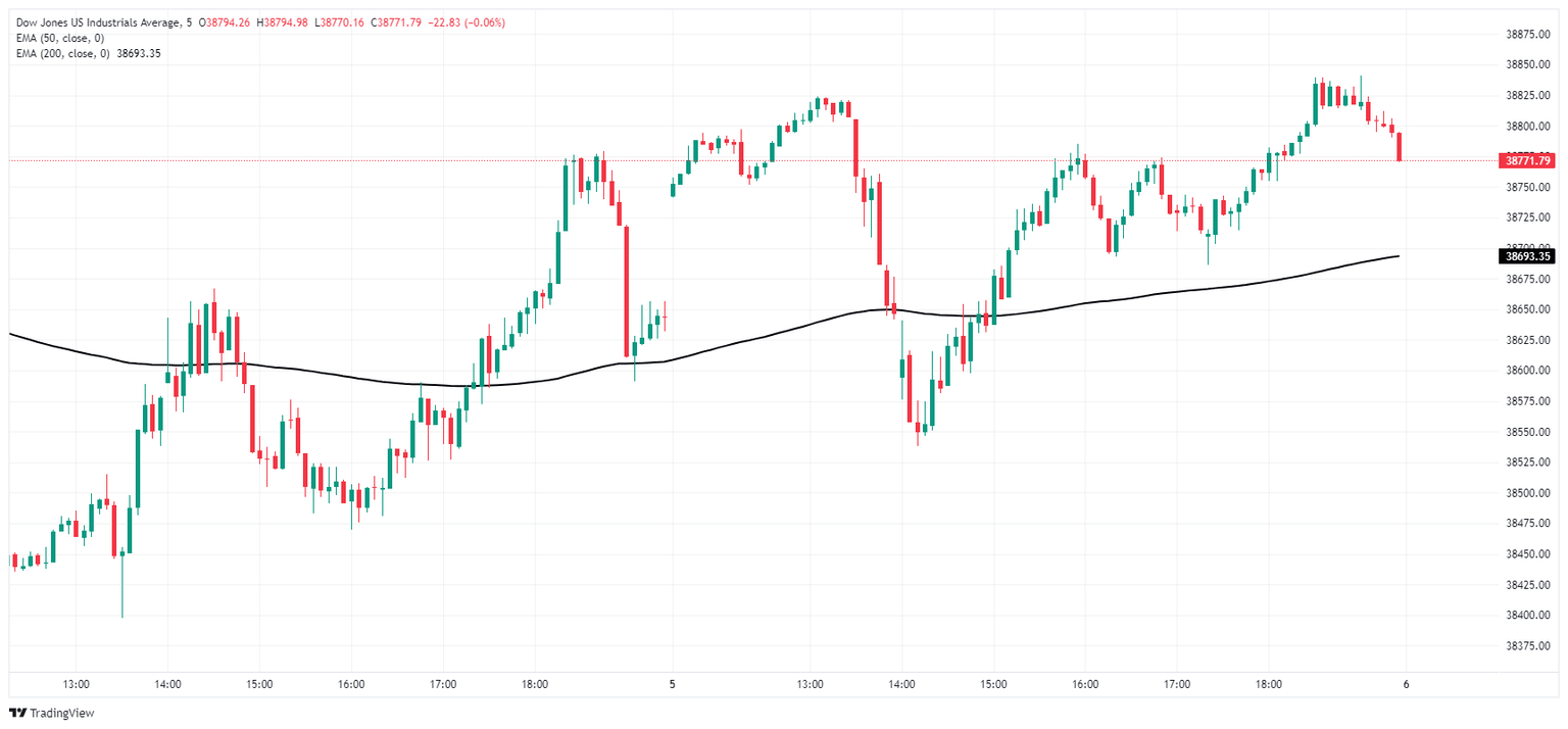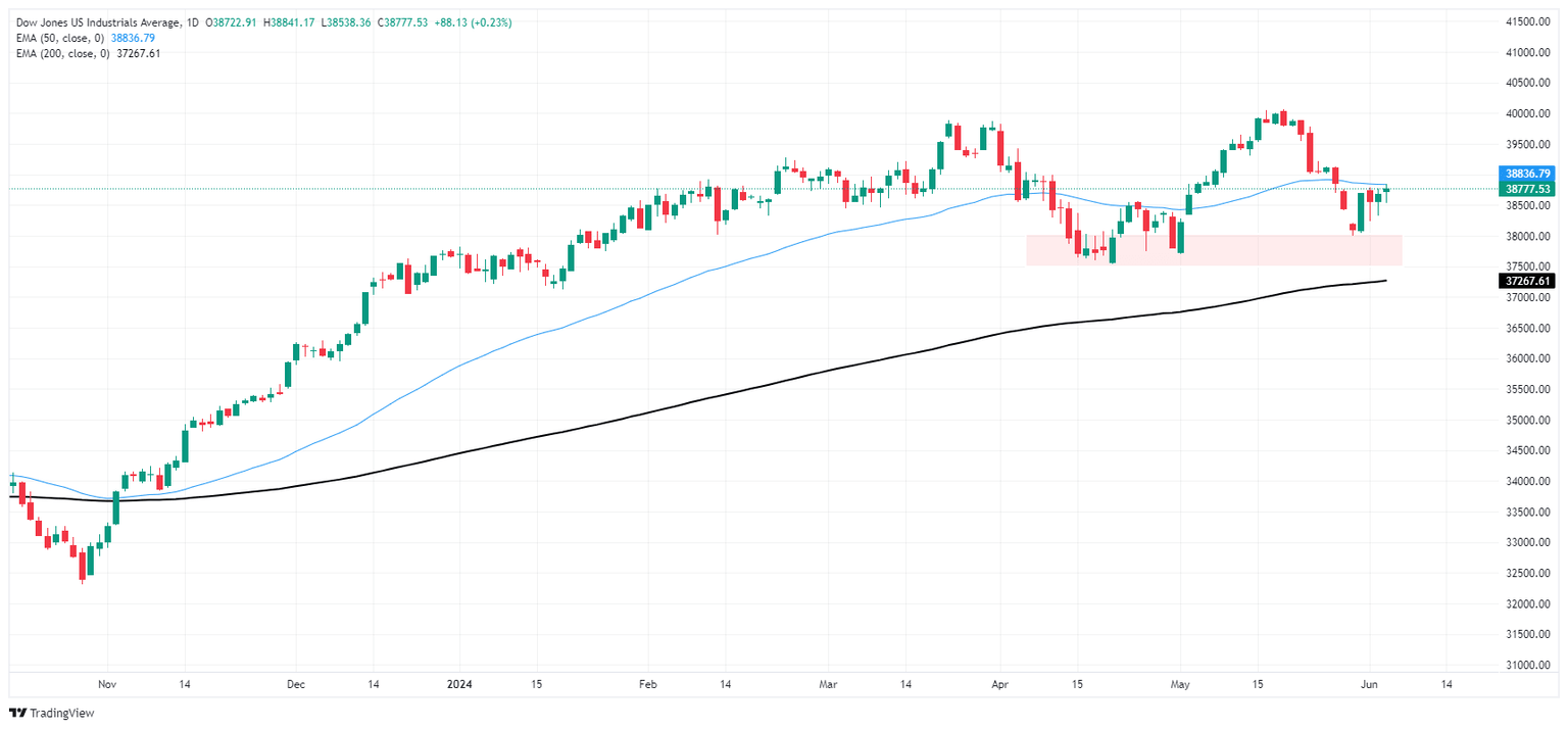 The Dow Jones Industrial Average (DJIA) treaded water on Wednesday, grappling with 38,750.00. After US data printed mixed, rate cut expectations held on the high side but gains in the Dow Jones index remain limited.