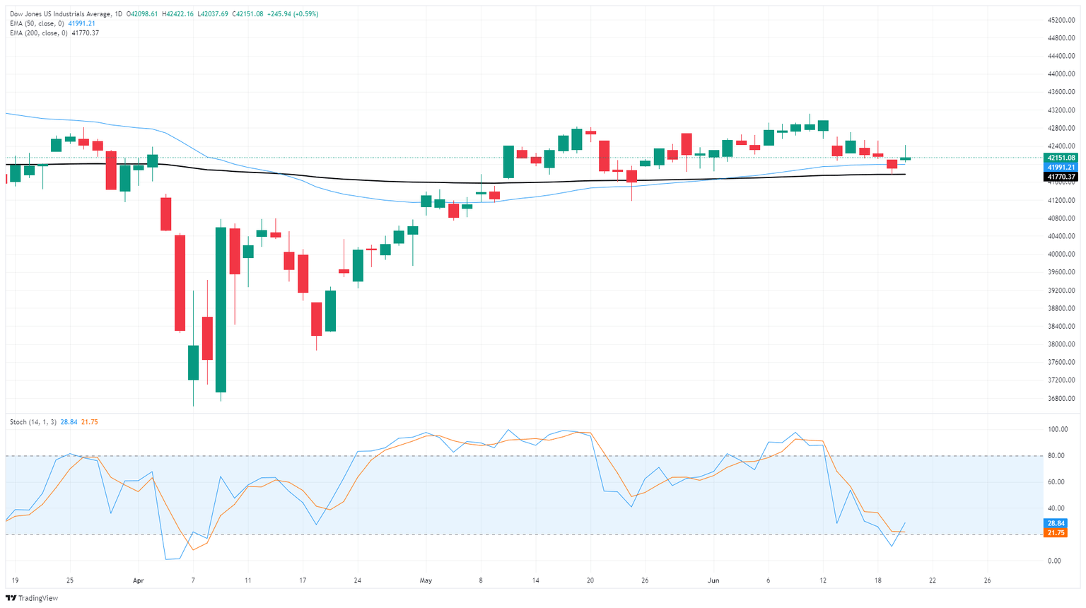 The Dow Jones Industrial Average remains mired in a near-term consolidation phase. The major equity index is churning chart paper just above the 42,000 price handle, but intraday prices are still finding technical support from the 200-day Exponential Moving Average (EMA) near 41,770.