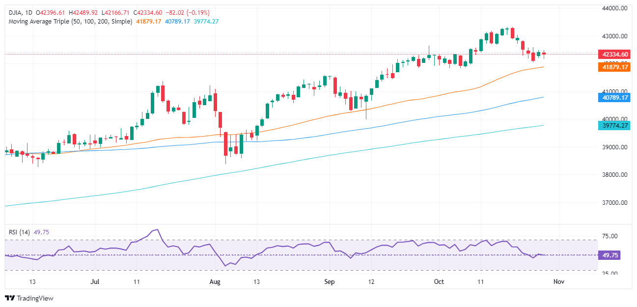 The Dow Jones Industrial Average (DJIA) trims off Monday’s gains, retreating from daily highs near 42,500 and down over 0.25%. US Treasury bond yields cling to gains. US jobs market data augmented the odds that the Federal Reserve (Fed) will cut interest rates at the November meeting, while Consumer Confidence improved sharply.
