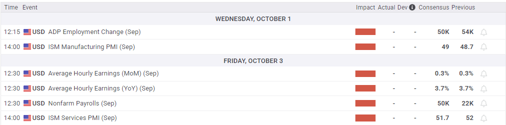 - The latest US NFP jobs report could be delayed if the federal government can’t pass a budget.