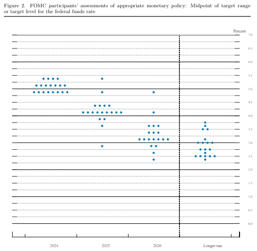 - Fed's "dot plot" shifted away from rate cuts in 2024.