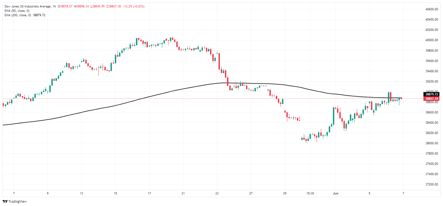 The Down Jones Industrial Average (DJIA) stuck firmly to midrange bets on Thursday as investors knuckle down for the wait to Friday’s US Nonfarm Payrolls (NFP) print. Investors are holding onto hopes for two rate cuts this year from the Federal Reserve (Fed) with the first expected in September. Continued easing in US data will help to confirm a softening economy, increasing the chances that the Fed will get pushed towards a faster pace of rate cuts.