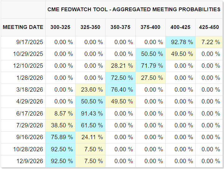 Interest rate markets are still pricing in over 90% odds of a quarter-point interest rate cut when the Fed makes its next rate call on September 17, but hopes for a new rate-cutting cycle were dashed by Thursday’s sharp increase in business-level inflation. According to the CME’s FedWatch tool, interest rate markets are now pricing in barely even odds of a second interest rate cut in October, and less than 30% odds of a third cut in December.