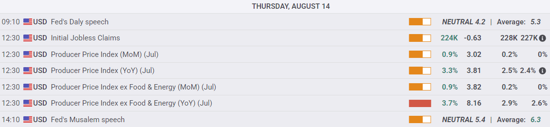 Core US PPI inflation accelerated to 3.7% YoY in July versus the expected rise to 2.9%, wiping out four months of progress on taming inflation and pushing producer-level price pressures back to where they were when the year started. Headline PPI inflation also rose to a six-month high of 3.3% over the same period, while the previous period saw a slight upside revision to 2.4%.