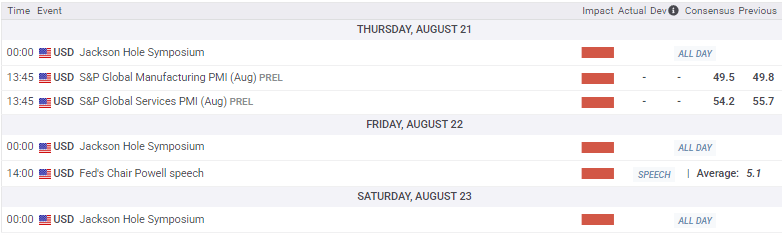 - Policymaker sentiment will take a front seat heading into the annual Jackson Hole central banking summit.