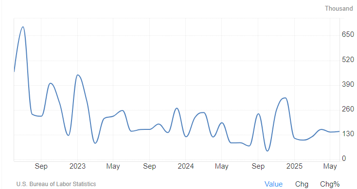US NFP figures showed a net gain of 147K new jobs through June, beating the median market forecast of 110K. The previous month’s figure was also revised higher to 144K, functionally ending this week’s broad-market fears of sputtering job growth. However, not all is as rosy as it appears in the headlines: around half of all job gains posted in June came from state and local government hiring (+73K), closely followed by more job gains in health care services (+58.6K), with leisure and hospitality hiring coming up in third (+20K). With most government hiring taking place in the education sector, analysts are throwing up early warning signs that it is incredibly unlikely that state and local governments will be able to maintain this pace of job creation.