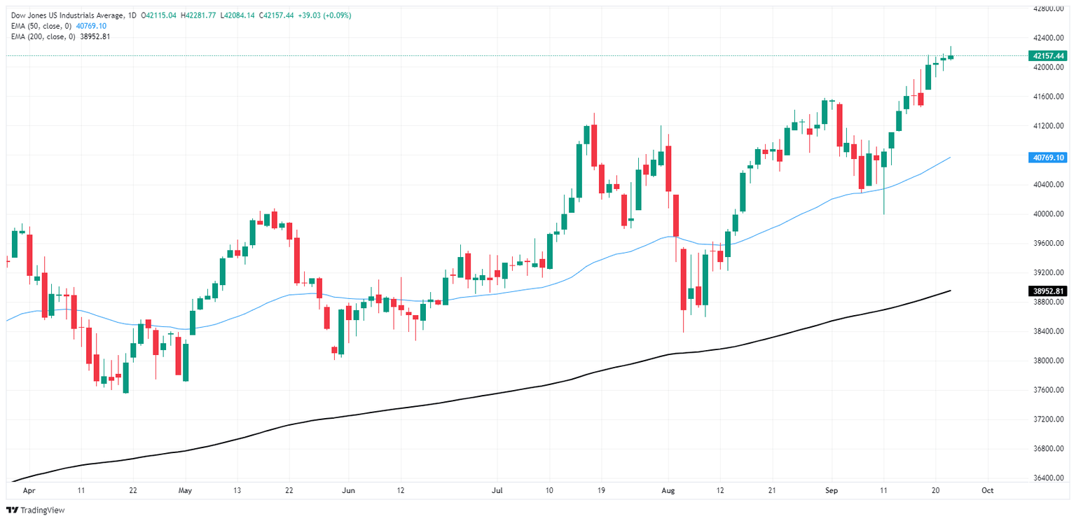 The Dow Jones Industrial Average (DJIA) ground its way into another record bid on Tuesday, but price action remains tepid and intraday momentum is struggling to outpace the 42,000 level. The CB Consumer Confidence Index for September dropped to the bottom end of a familiar two-year range, and Federal Reserve (Fed) Governor Michelle Bowman has leaned into her dissent of the Fed’s recent 50-bps rate cut.