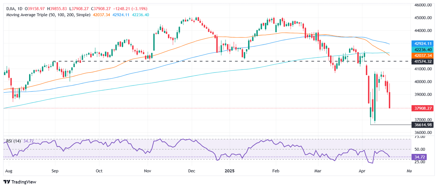 The Dow Jones Industrial Average (DJIA) collapsed over 1,000 points, or 3%, below the 38,000 figure for the fourth time in April. Investors were growing concerned about the Federal Reserve’s (Fed) independence after US President Donald Trump continued his attacks on Fed Chair Jerome Powell on Monday.