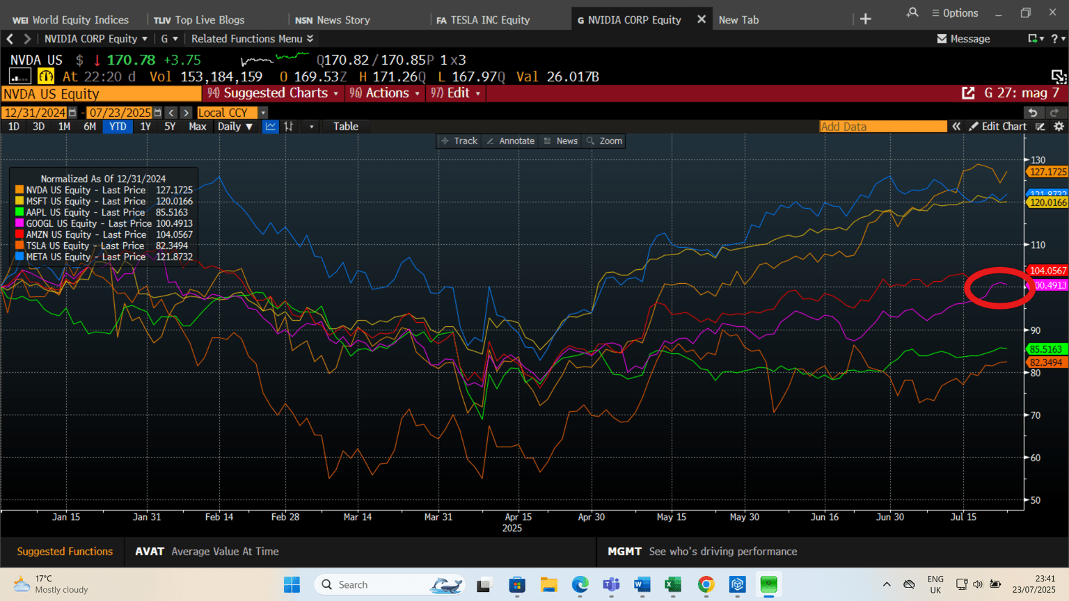 While the stock is higher by 1.8% in after-market trading in the US, there are concerns about the future for Google, and whether all of this investment will pay off. Google was the weakest performer in the Magnificent 7 today, and it is the third weakest performer so far this year. Although the stock price is higher by 14% in the past month, it is still down 0.22% YTD. Companies like Google who are in the process of infusing their products with AI are not dominating the AI trade, because of the huge costs involved. Today’s earnings report is unlikely to move the dial for Google’s share price, and it may continue to underperform some of its Magnificent 7 peers for the foreseeable future.