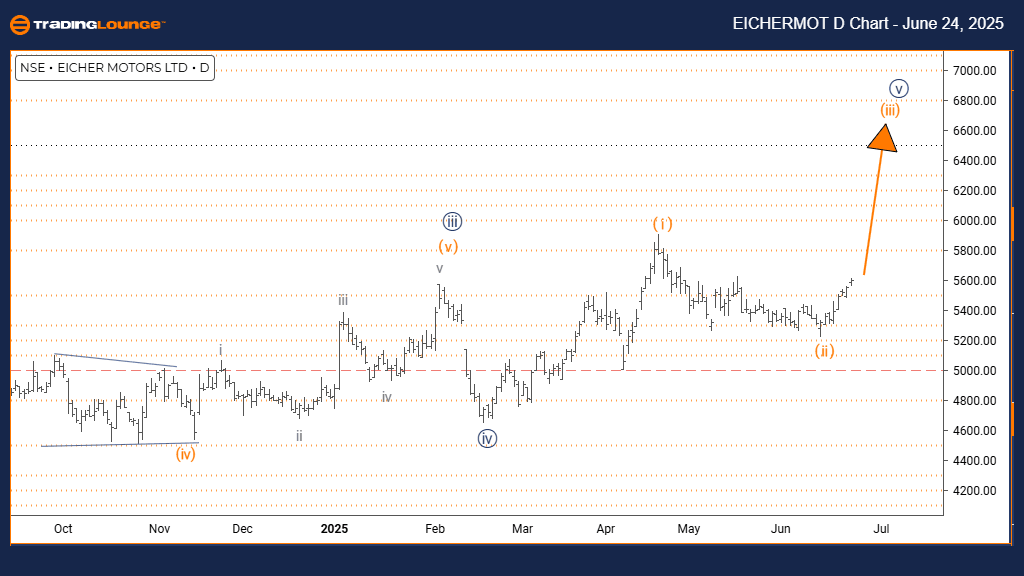 The technical structure signals that EICHER MOTORS may continue its upward path. With Orange Wave 3 now active, strong buying interest is likely. However, traders should stay alert, as this third wave is within a fifth wave, indicating the cycle’s final bullish leg — Navy Blue Wave 5.