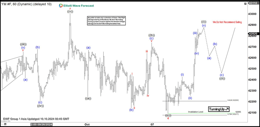 Short term Elliott Wave view in Dow Futures (YM) suggests rally to 43005 ended wave 3. Pullback in wave 4 unfolded as a zigzag Elliott Wave structure. Down from wave 3, wave ((a)) ended at 42245. Rally in wave ((b)) unfolded as expanded flat Elliott Wave structure. Up from wave ((a)), wave (a) ended at 42673 and dips in wave (b) ended at 42142. Wave (c) higher ended at 42663 which completed wave ((b)) in higher degree. The Index then extended lower in wave ((c)) towards 42093 which completed wave 4 in higher degree.