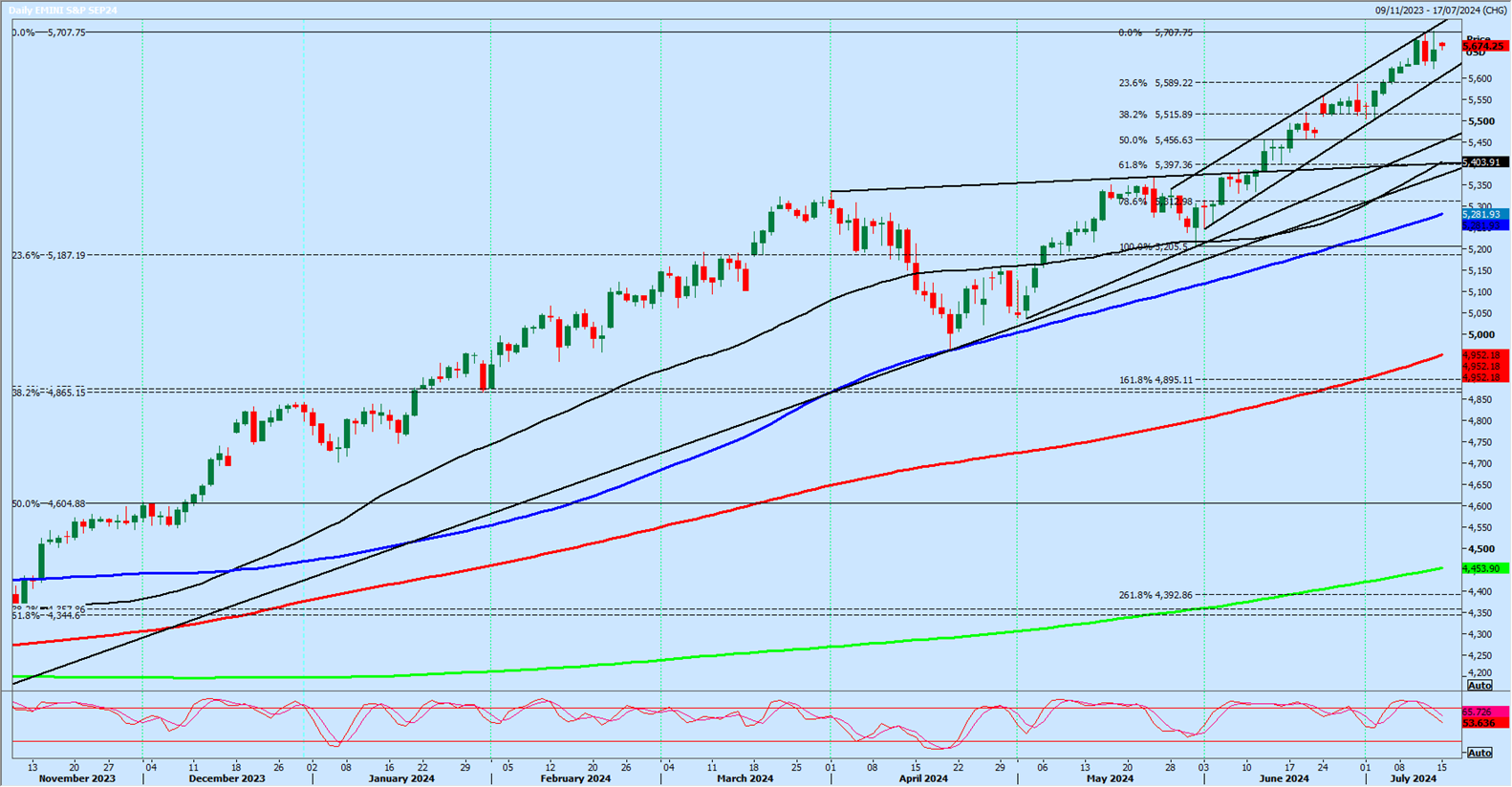We hit the next targets of 5601/04, 5611/13 & 5617/19, 5627/31, 5646/48 & now 5672/76 & 5705/07 last week. A new all time high exactly here before prices unexpectedly collapsed to wipe out all of Wednesday's gains. We wrote: I would at least expect a sideways consolidation to develop & in the very short term dome further minor losses are possible (even likely).