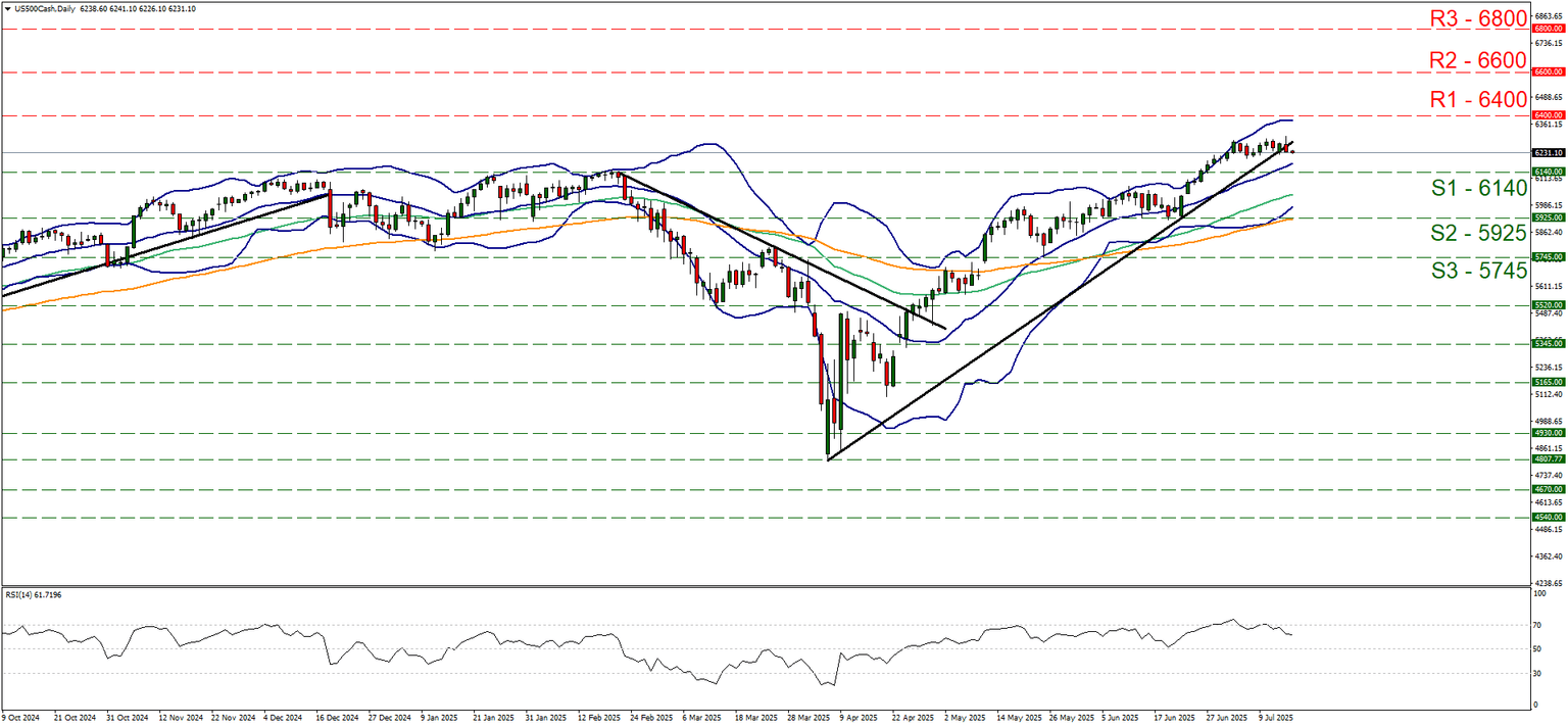 The release of the June US CPI rates for June took the markets by surprise, as the rates showed an intensification of inflationary pressures in the US economy, beyond market expectations. The rates accelerated on a headline level to 3.7%yy, exceeding market expectations while on a core level also accelerated yet missed market expectations. The big picture though remains that inflationary pressures in the US economy are intensifying. It seems that Trump’s tariffs are coming into effect, raising prices for consumers which in turn tends to verify the Fed’s narrative and may force the bank to maintain rates high for longer. Today we focus on the release of the US PPI rates for the same month in an effort of further verification of the persistence of inflationary pressures in the US economy this time on a producers’ level, yet its understandable that should inflationary pressures on a producers’ level be substantial and persist over the coming months, manufacturers are expected to roll them over to consumers. Hence the PPI rates provide an idea of the relative “depth” of inflationary pressures in the US economy. Overall, should we see the Fed’s worries for inflationary pressures intensifying and the bank hardening its stance, then a bearish effect could be demonstrated in US equities markets.