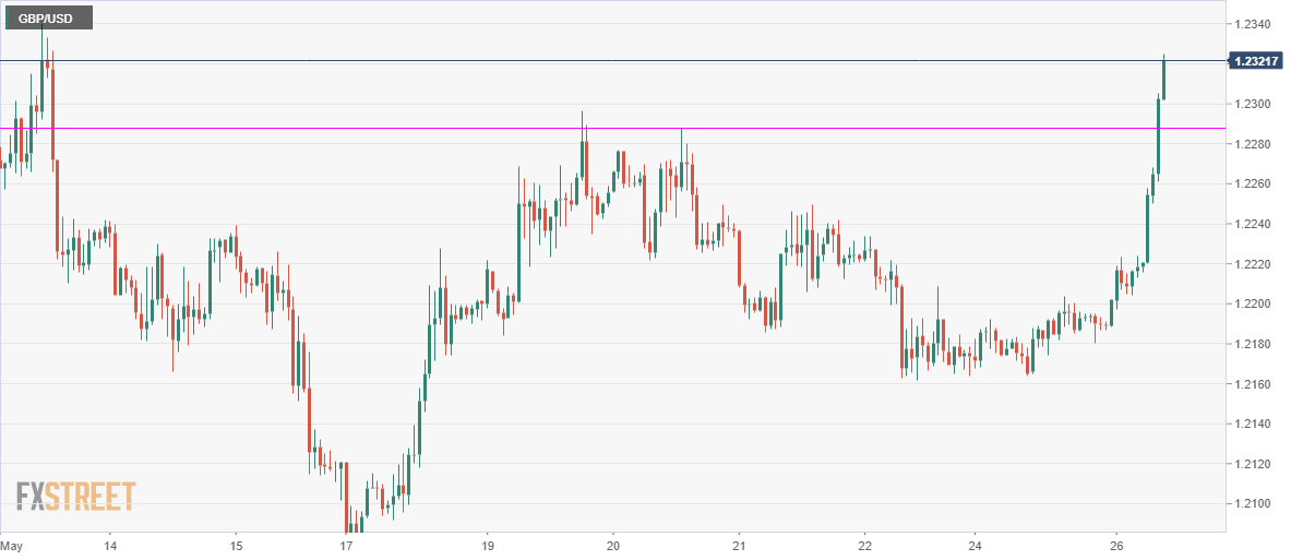 At the press time, the spot rallies 1.12% to fresh two-week highs of 1.2325.