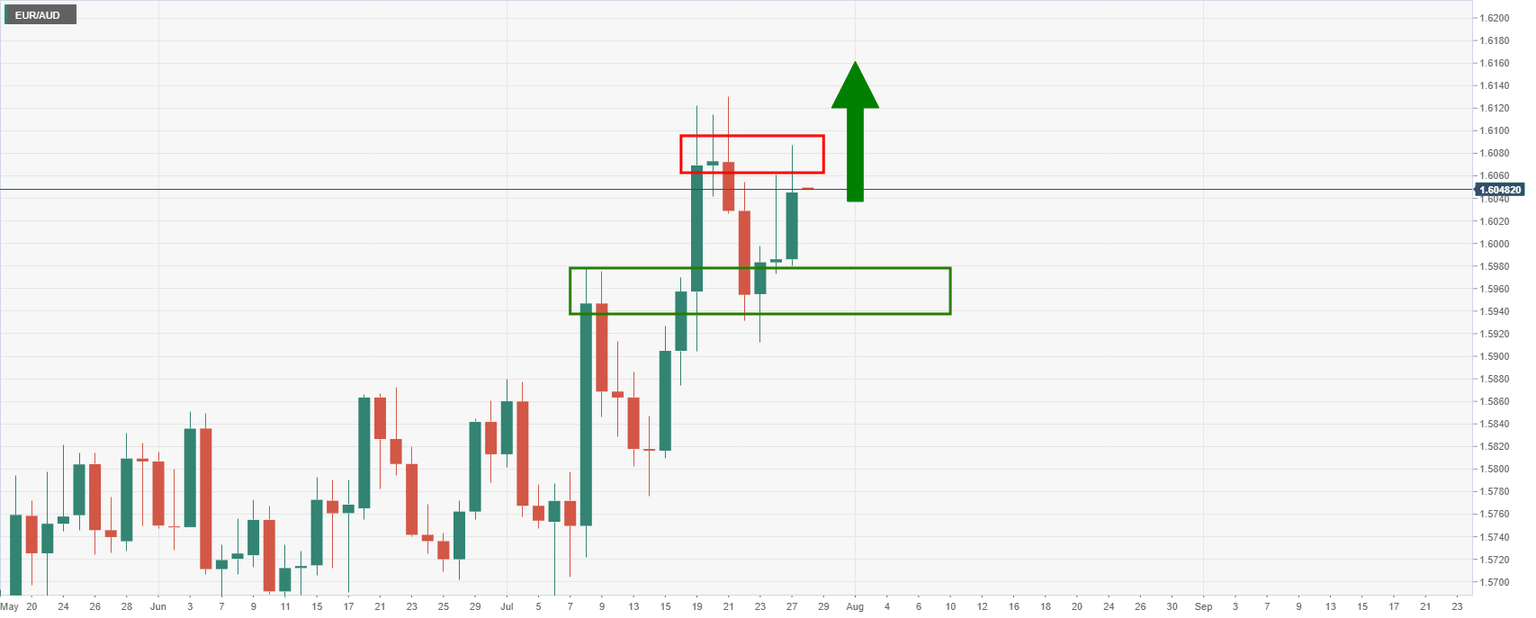 - EUR/AUD is currently trading on the bid following a daily correction.