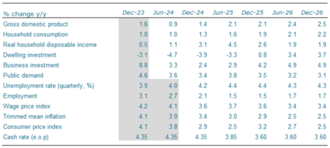 ANZ expects the RBA to begin cutting rates in February 2025 with the cash rate to end 2025 at 3.60%.
