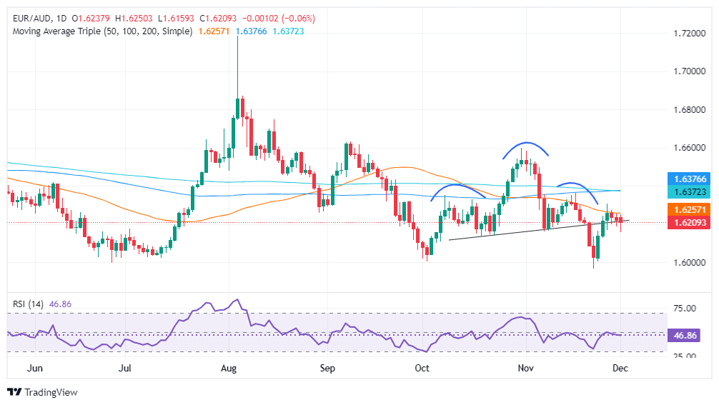 The EUR/AUD consolidates above 1.6200 for the fourth straight day, and despite trading below the 50, 100, and 200-day Simple Moving Averages (SMAs), the pair is neutrally biased.