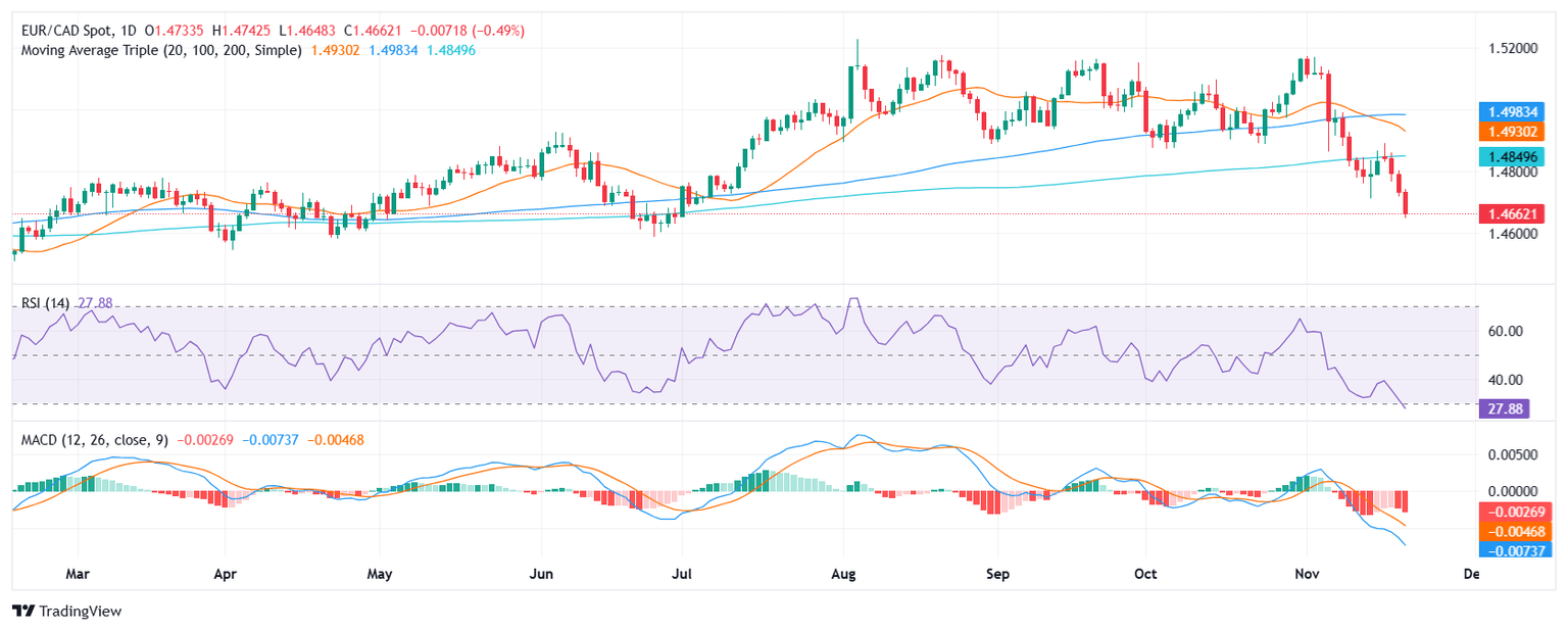 EUR/CAD Price Analysis: Pair fell below 1.4700, lowest since July