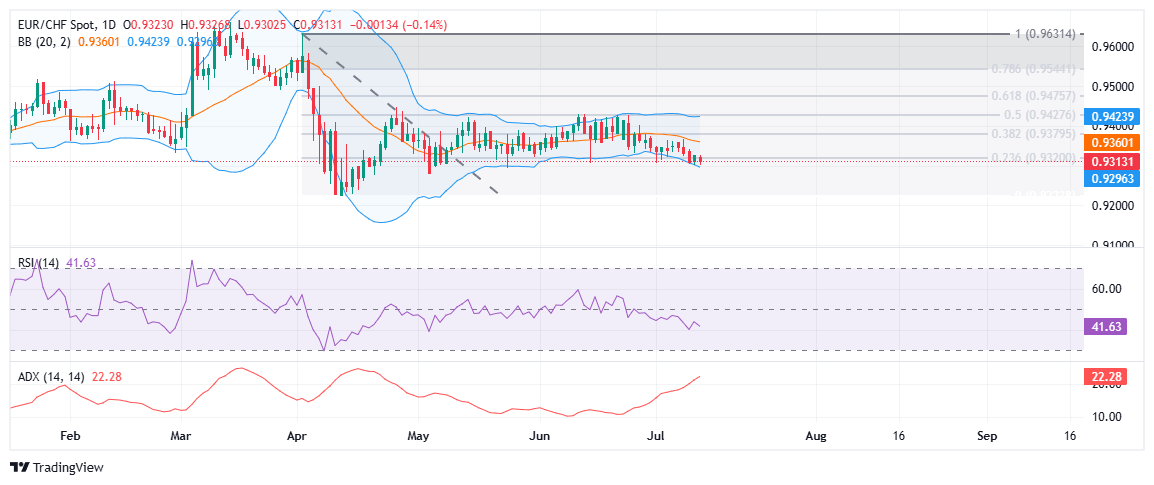 - The EUR/CHF cross is trading near the lower boundary of its multi-week range between 0.9300 and 0.9430.