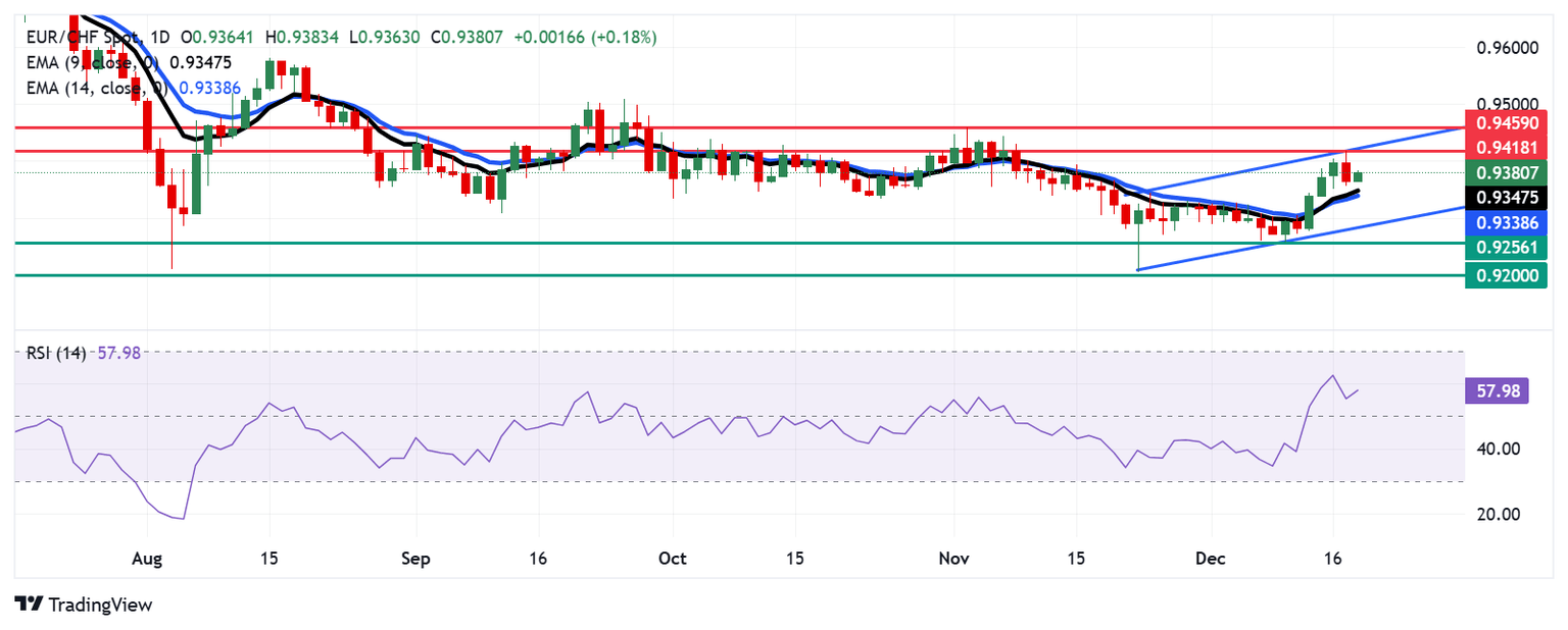 EUR/CHF Price Forecast: EUR/CHF remains above 0.9350, nine-day EMA