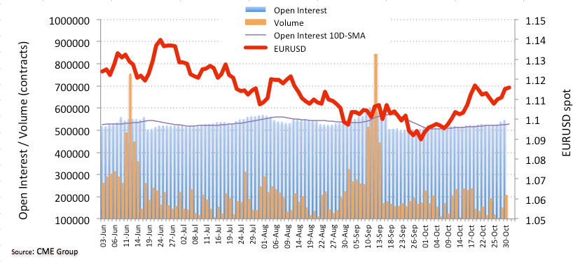 Open interest in EUR futures markets rose once again on Wednesday, now by around 7.4K contracts, recording the fourth consecutive build according to preliminary data from CME Group. In the same line, volume clinched the second advance in a row, this time by around 56.6K contracts.