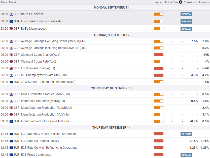 UK-EU economic calendar, Monday through Thursday. All times GMT.