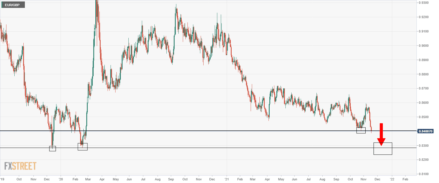 - EUR/GBP has printed fresh 21-month lows in recent trade under 0.8390.