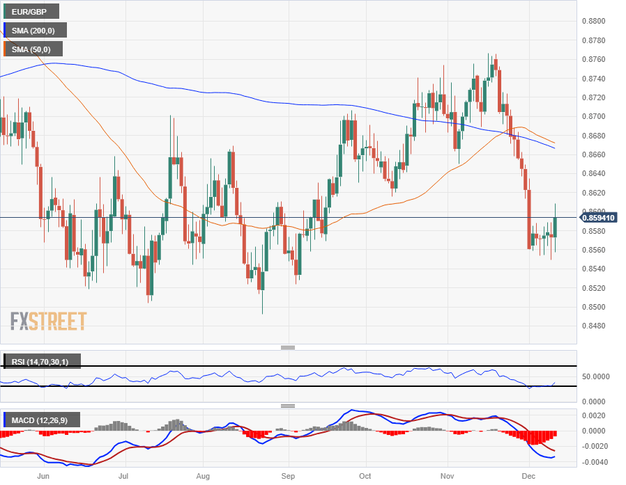 The Pound Sterling’s (GBP) early slump on Tuesday sees the Euro (EUR) catching a bid and sending the EUR/GBP back into the 0.8600 handle. Price action is drawing tight once more and the pair is struggling to maintain a hold on the key level, but intraday bids are catching technical support from the 200-hour Simple Moving Average (SMA) near 0.8580.
