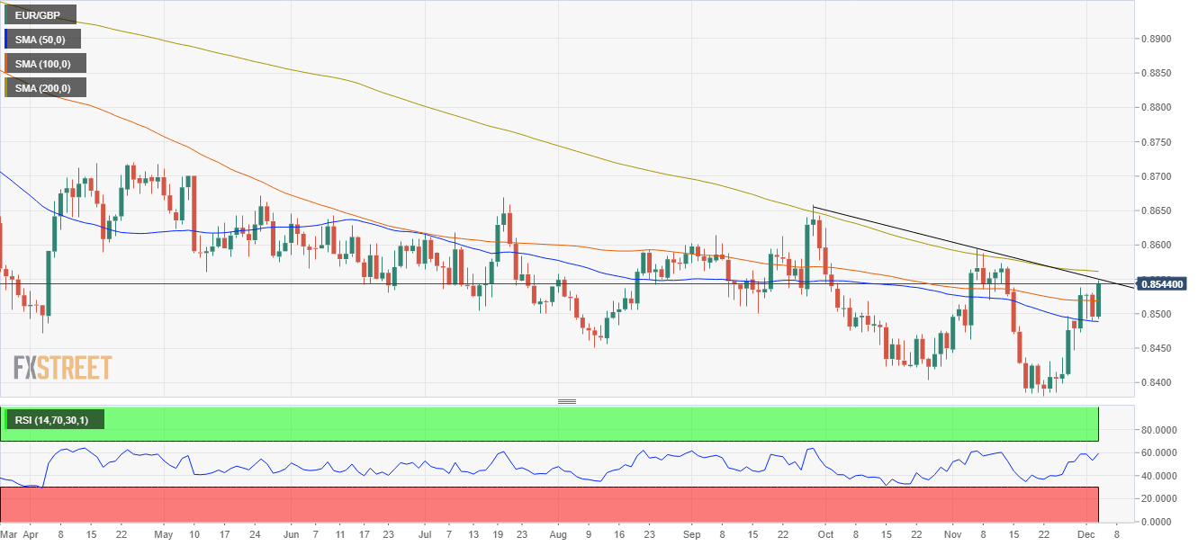 EUR/GBP Price Analysis: Approaches to the 200-DMA, hovers around 0.8540s