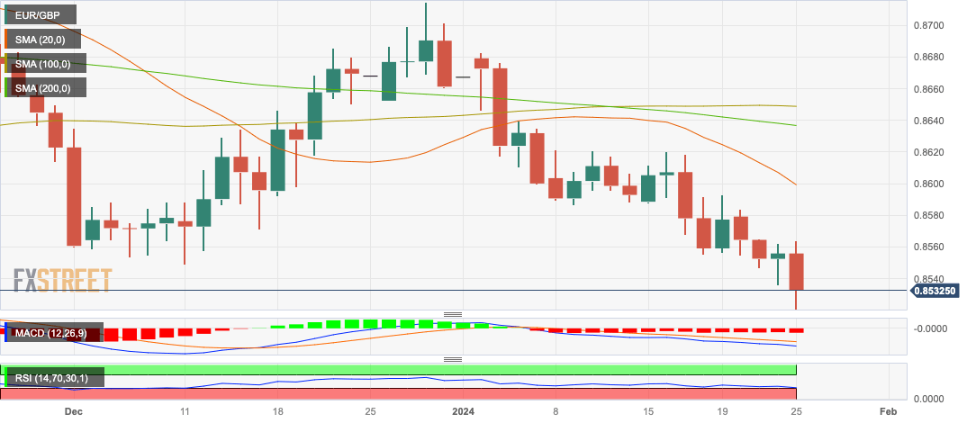 In that sense, the EUR/GBP weakened after the European Central Bank’s (ECB) cautious approach to interest rate cuts, with only minimal hints of cutting interest rates, and as for now the markets do not expect a rate cut until June. In contrast, the Bank of England (BoE) maintains a steady policy with markets expecting less easing than the ECB of 125 bps in 2024 which gives the GBP strength. Therefore, both the ECB's potential easing and the BoE's steady approach is pushing the cross downwards. Another factor that benefits the Pound is that the British economy is holding resilient to the BoE monetary policy which is pushing the bank to delay rate cuts.