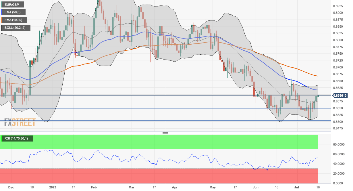 The EUR/GBP pair navigates to the north above 0.8590 and challenges the 0.8600 round mark heading into Tuesday’s European session. According to the daily chart, EUR/GBP holds above the 50- and 100-day Exponential Moving Averages (EMA), implying the path of least resistance for the EUR/GBP is to the upside.
