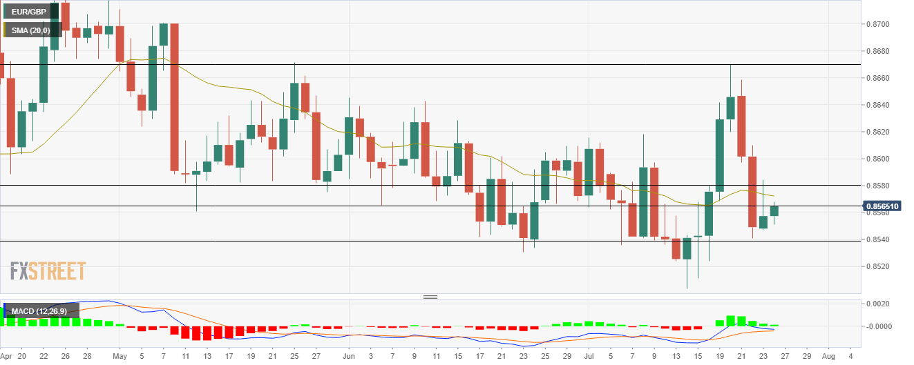 EUR/GBP Price Analysis: Bulls bounce back from 0.8540, eye 20-day SMA