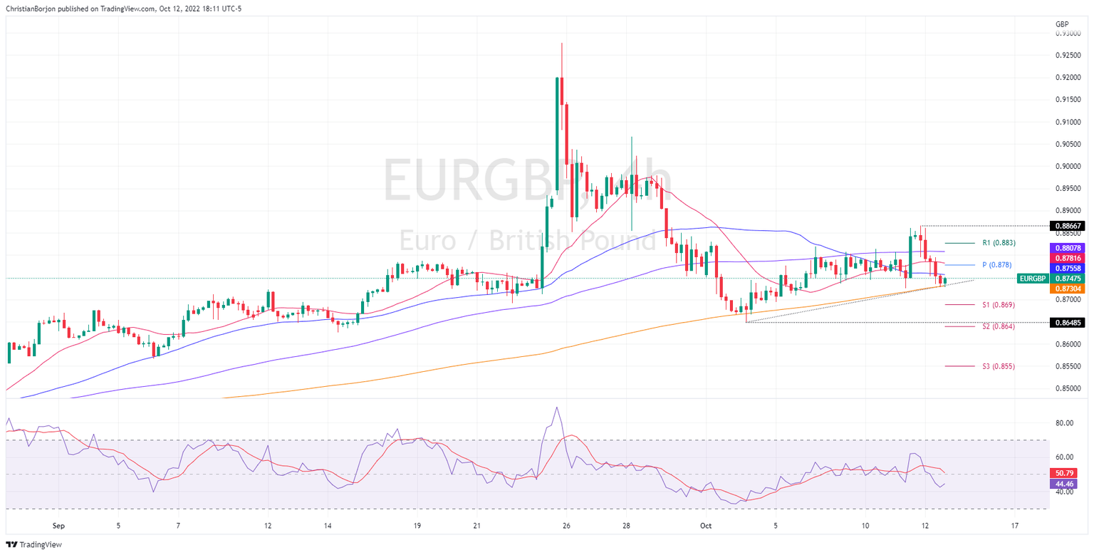 The key support levels are the October 4 low at 0.8648, which, once cleared, could open the door for a test of the 50-day EMA at 0.8638. On the flip side, the 20-day EMA at 0.8794 is the first resistance, followed by the 0.8800 figure.